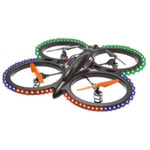 Радиоуправляемый большой квадрокоптер с защитной рамкой с металлическими вставками, установленной HD видеокамерой и 6-канальной радиоаппаратурой 2,4 ГГц. Модель способна выполнять цикличные перевороты на 360°.